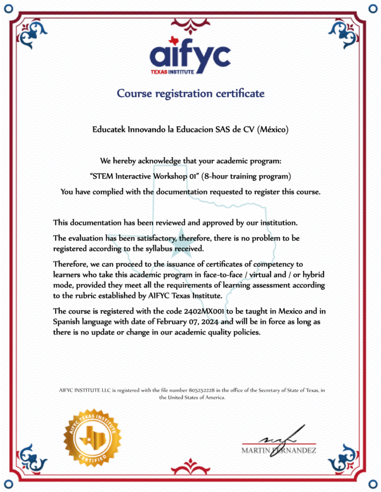 Nuestro programa de Capacitación y Certificación de Competencias Laborales es respaldado por la Asociación Iberoamericana de Formación y Certificación “AIFYC TEXAS INSTITUTE” entidad comprometida con el desarrollo profesional y la integración efectiva de la comunidad en Estados Unidos.